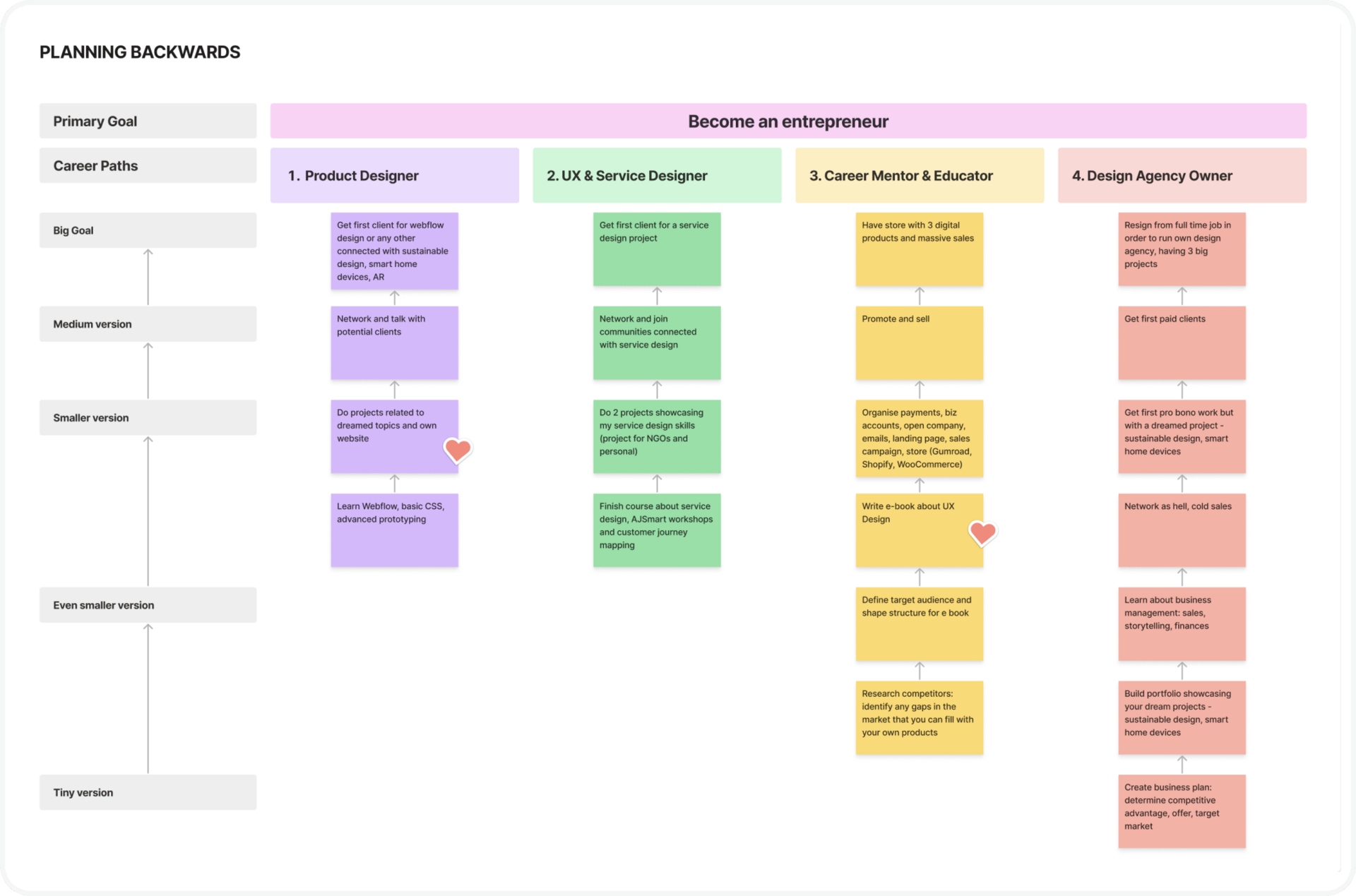 This is where design thinking really kicks in. We're going to reverse-engineer your path.