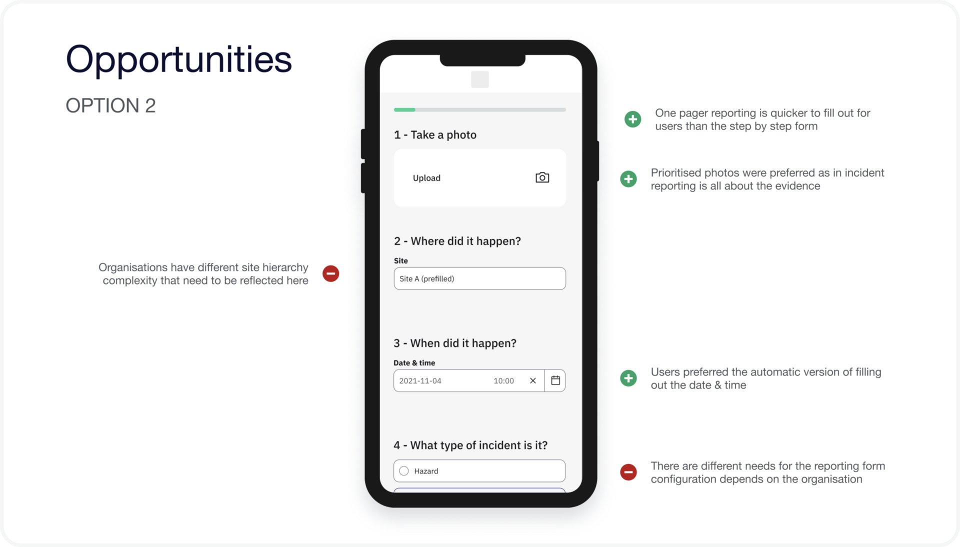 Example of a narrow design presentation with iteration and learnings