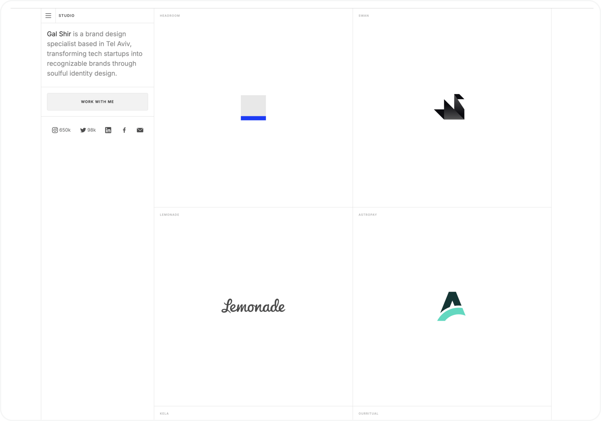 Gal is a brand designer. His portfolio is a perfect example of how to make the work the main actor, not the portfolio itself.